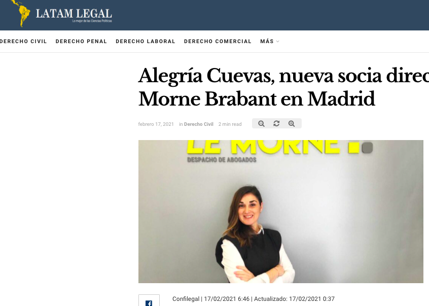 En Le Morne Abogados seguimos creciendo, en esta ocasión nos complace dar la bienvenida a Alegría Cuevas como Socia directora del despacho Le Morne Madrid (C/Raimundo Fernández Villaverde).